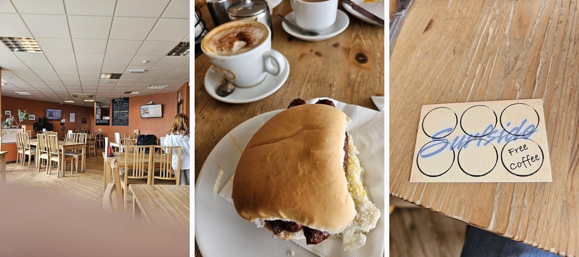The food was served tasty, freshly prepared & hot. Friendly staff & a nicely presented cafe. There is a loyalty card for free drinks when you've purchased the required number of drinks. You can sit outside when the weather is suitable. There are great views looking out over the bay. There is adequate parking around the cafe.